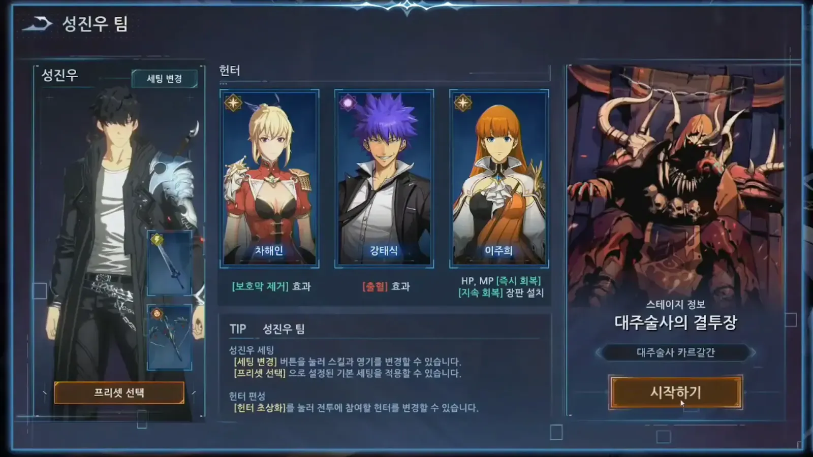 Fot. Screen z gry Solo Leveling: Arise - wybór postaci towarzyszących w rajdzie / YouTube |